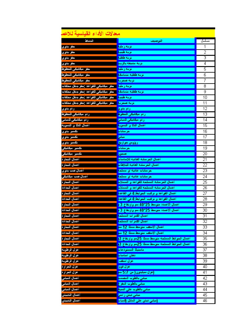 معدلات الاداء للاعمال المدنية